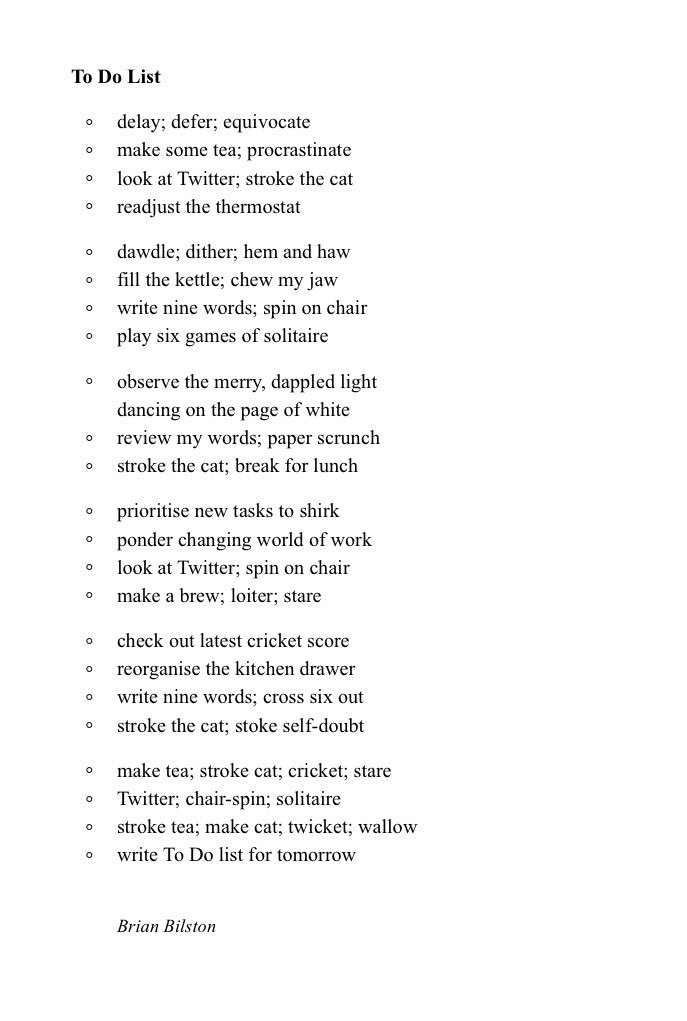 I have written out my To Do list today in the form of a poem. It’s called ‘To Do List’. https://t.co/96ImKxFtGE