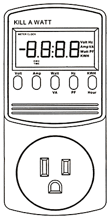 The Kill-A-Watt Meter is a small device that allows home owners to measure the power use of their home appliances. I have found it to be invaluable in understanding how my devices (and lifestyle!) adds to my power needs and electricity bill.