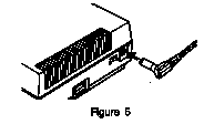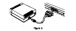 Connect the computer and the disk drive with the connection cable as shown he Figure 2 The larger connector plugs into the RS-232C port on the rear panel of the computer. The smaller connector plugs into the RS-232C port on the rear panel of the disk drive. Both plugs are asymmetrical. If a plug cannot be inserted easily don't force it. Just turn the plug over and try again. Be sure that the cable connections are secure. Loose connections will cause problems because data is transferred through this cable