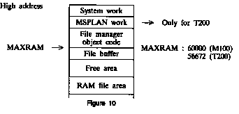 FLOPPY itself is not the main body of the file manager, but the initial check and boot module. Though it has no extension, its construction is a .CO file. The object of the file manager is invisible. Once you install FLOPPY by running the IPL program, a part of the high memory is occupied and the MAXRAM value is decreased to protect FLOPPY. Some application programs that use the high memory will not work or will violate FLOPPY. If you want to erase FLOPPY , use the utility program FREMEM.BA stored on the system diskette. See Utilities.